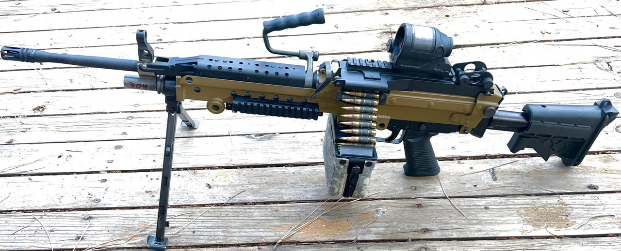 Loading... Please wait...Trijicon SRS optic. 18" barrel or 13.7" barrel with Sig Sauer SLX-MG Suppressor. MK46 receiver has no option for feed from rifle magazines.