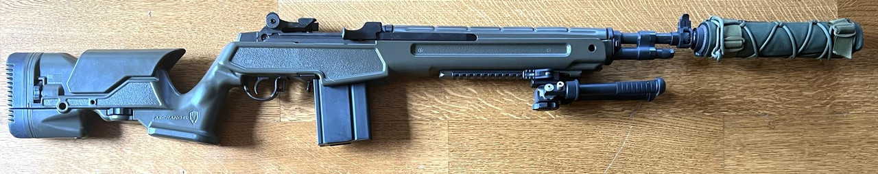 Has a YHM Titanium Phantom suppressor with mirage cover.